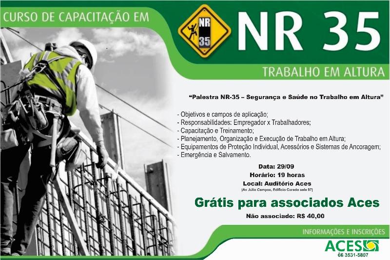 ** Curso grátis para associados Aces A Associação Comercial e Empresarial de Sinop oferece a palestra “NR-35 Segurança e Saúde no Trabalho em Altura” para qualificar empresários e colaboradores. A palestra será no dia 29 de setembro no auditório da Aces, que fica na Avenida Júlio Campos, Edifício Curado sala 07 a partir das 19h. […]