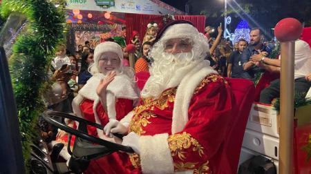 A Parada Natalina foi encerrada na Praça da Bíblia, onde o prefeito Roberto Dorner e a primeira-dama Scheila Pedroso deram uma volta no trenó do bom velhinho antes do início da cerimônia de abertura. Dorner, ainda, cumprimentou as crianças, que também foram convidadas ao palco. “Quero agradecer a Deus por essa oportunidade de estar proporcionando essa festa para todos os sinopenses e até mesmo à população de cidades vizinhas, que virão até aqui visitar. Queremos ser uma cidade de coração aberto”, frisou.